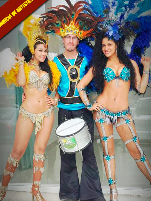 BATUCADA Y GAROTAS DESDE BRASIL :: RITMO Y BAILE PARA ANIMAR Les ofrecemos un espectáculo que por su ritmo y colorido hará vibrar a todo tipo de público. Ritmos cariocas y samba para disfrutar al máximo del carnaval de Rio de Janeiro en su evento. 3 percusionistas y dos bailarinas es una formación funcional y suficiente, aunque podemos componer formaciones a medida.